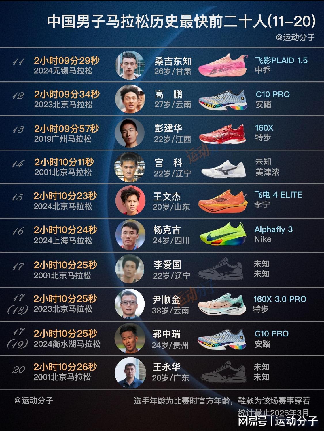 更早的前辈,任龙云、韩刚、胡刚军(刚被挤出3月的新榜单)都是传统跑鞋。不妨想象下,如果他们的巅峰期有超级跑鞋加持,成绩能达到怎样的高度。