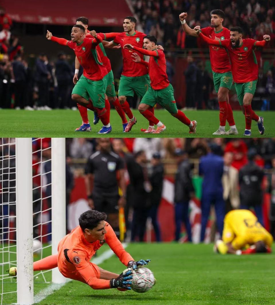 而随后,东道主摩洛哥与尼日利亚在120分钟时间内鏖战踢成0-0平。最终凭借门神布努的两次扑点,摩洛哥总比分4-2淘汰尼日利亚晋级非洲杯决赛。